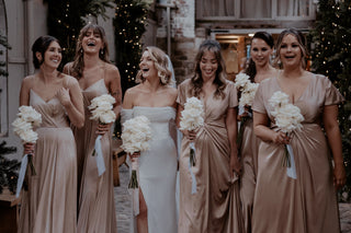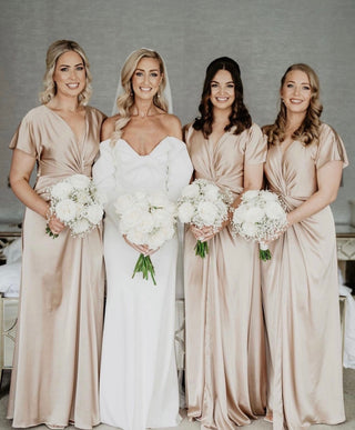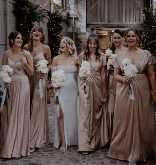 “My bridesmaids wore the Camilla dress in champagne for our wedding, which I purchased directly from TH&TH and they were incredible! For being made out of satin, these dresses were SO flattering and look beautiful on all shapes and sizes. If you are looking for a brand that is size inclusive for bridesmaids dresses, this is the one! 🤍 I searched high and low for dresses that I liked, that would look good on my girls, that they would feel comfortable in and that I would be able to order in all the sizes I needed these were perfect. They have so many different shapes in the same shades if you wanted to mix and match but I would personally recommend the Camilla dress to anyone!.”
