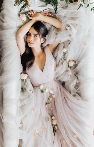 "TH&TH's bridesmaid dresses are created from super light chiffons and tulles mixed with soft crepes make for an ethereal wonderland"