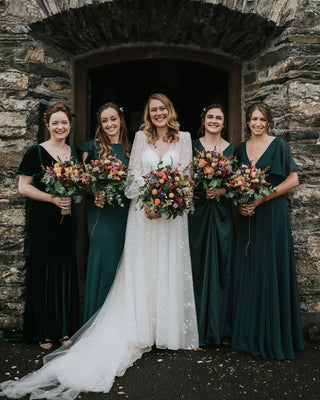 Dresses: Celeste In Forest Green,, Camilla in Emerald Dawn and Phoebe In Emerald Dawn