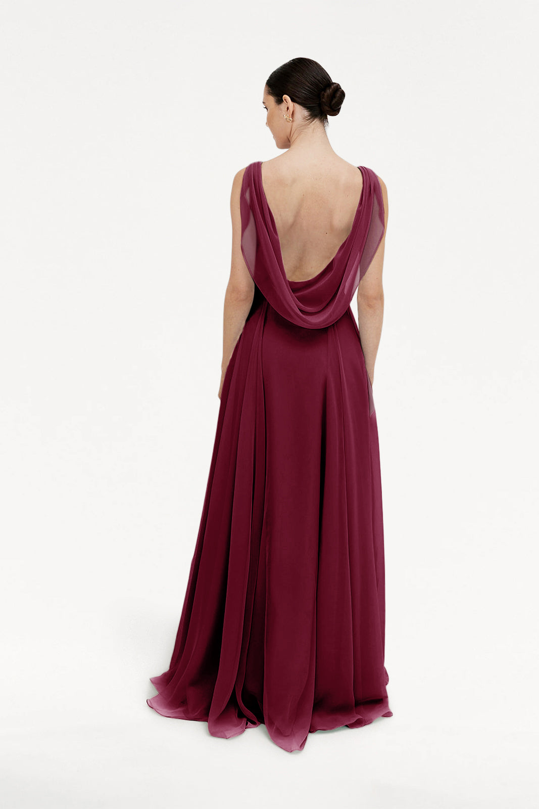 The Athena Dress by TH&TH Bridesmaids is the epitome of timeless elegance, crafted from fluid, light-as-air chiffon that drapes beautifully and moves with effortless grace. Designed to flatter from every angle, this cowl neck bridesmaid dress features a softly draped front bodice paired with a striking open back cowl, offering a modern twist on a classic silhouette.