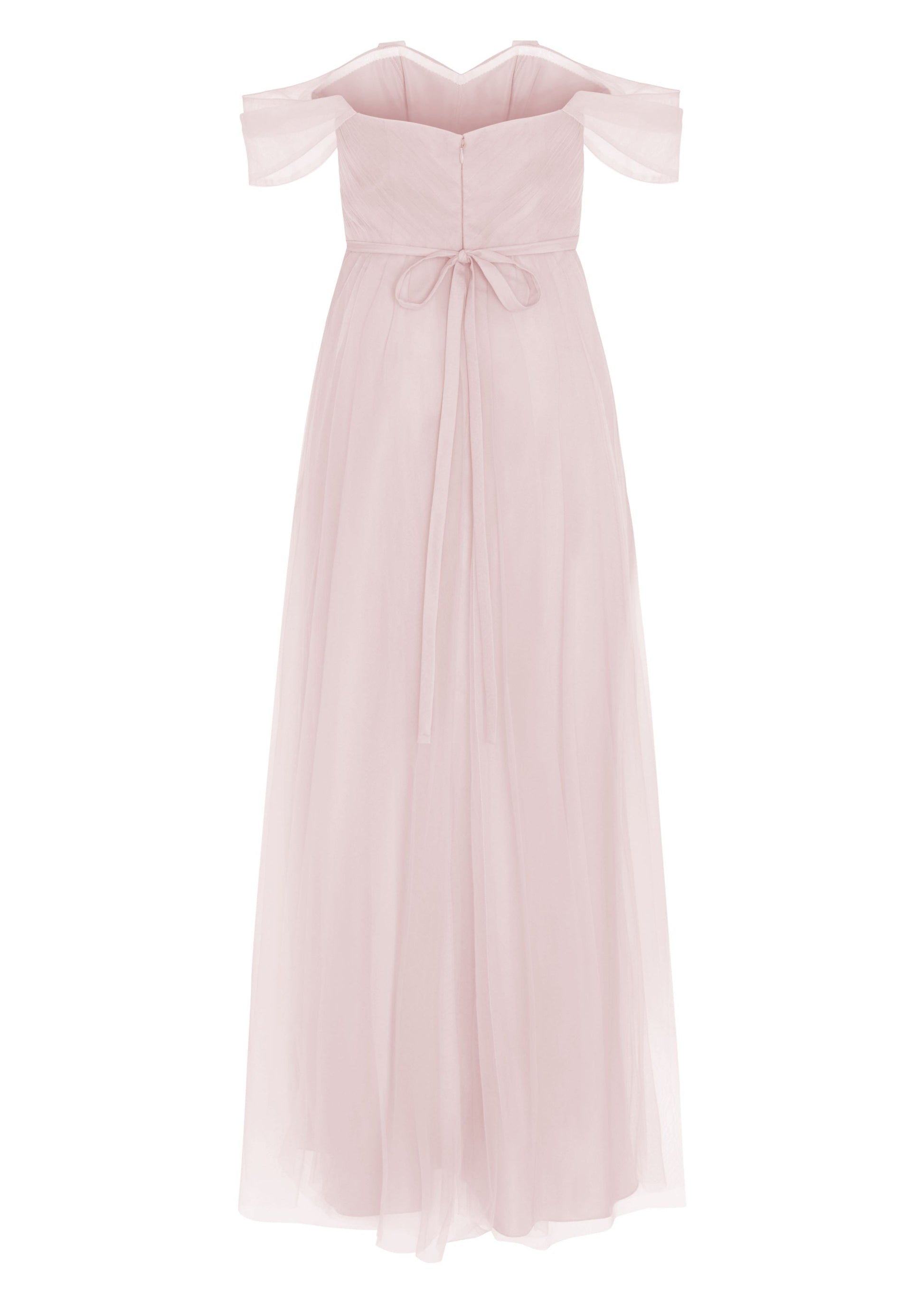 Bardot Bridesmaid Dress in Smoked Blush Tulle