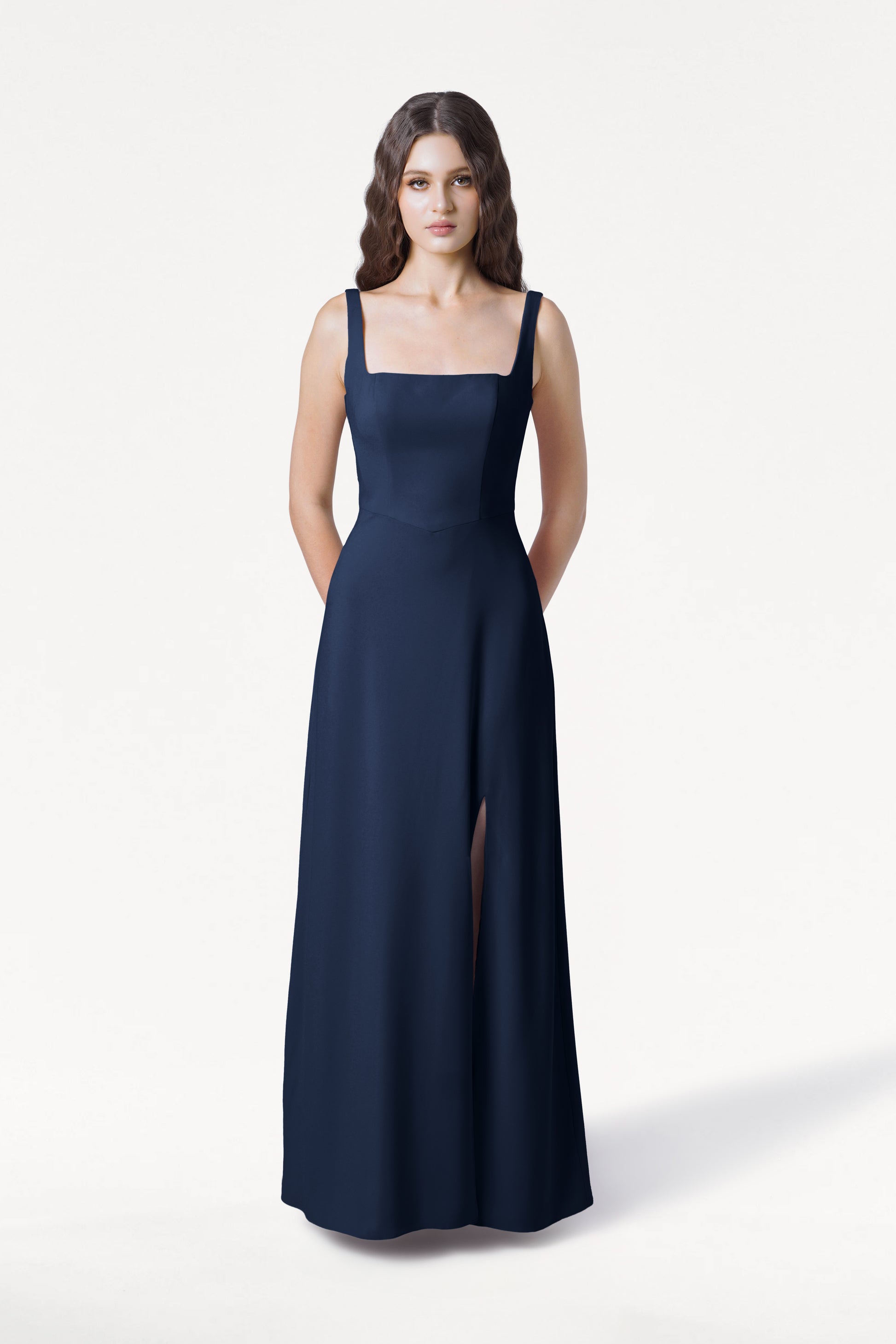 Helena is a modern moss crepe bridesmaid dress, designed for contemporary bridal parties seeking effortless sophistication. Elegant, structured, and thoughtfully size-inclusive, this fitted gown features a sleek square neckline and clean, timeless lines for a refined and modern look. Bra-friendly and designed with comfort in mind, Helena offers support without compromising on style.