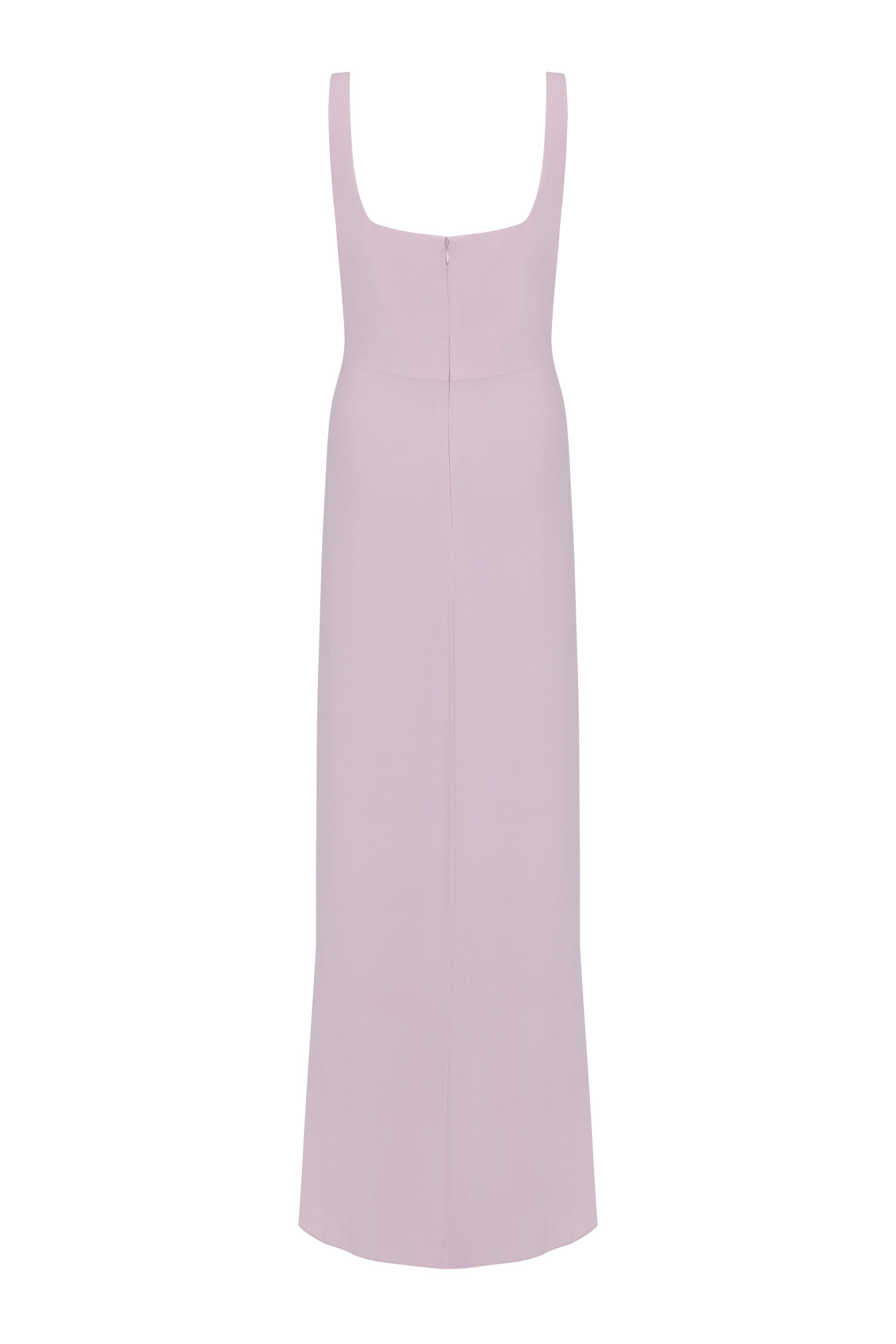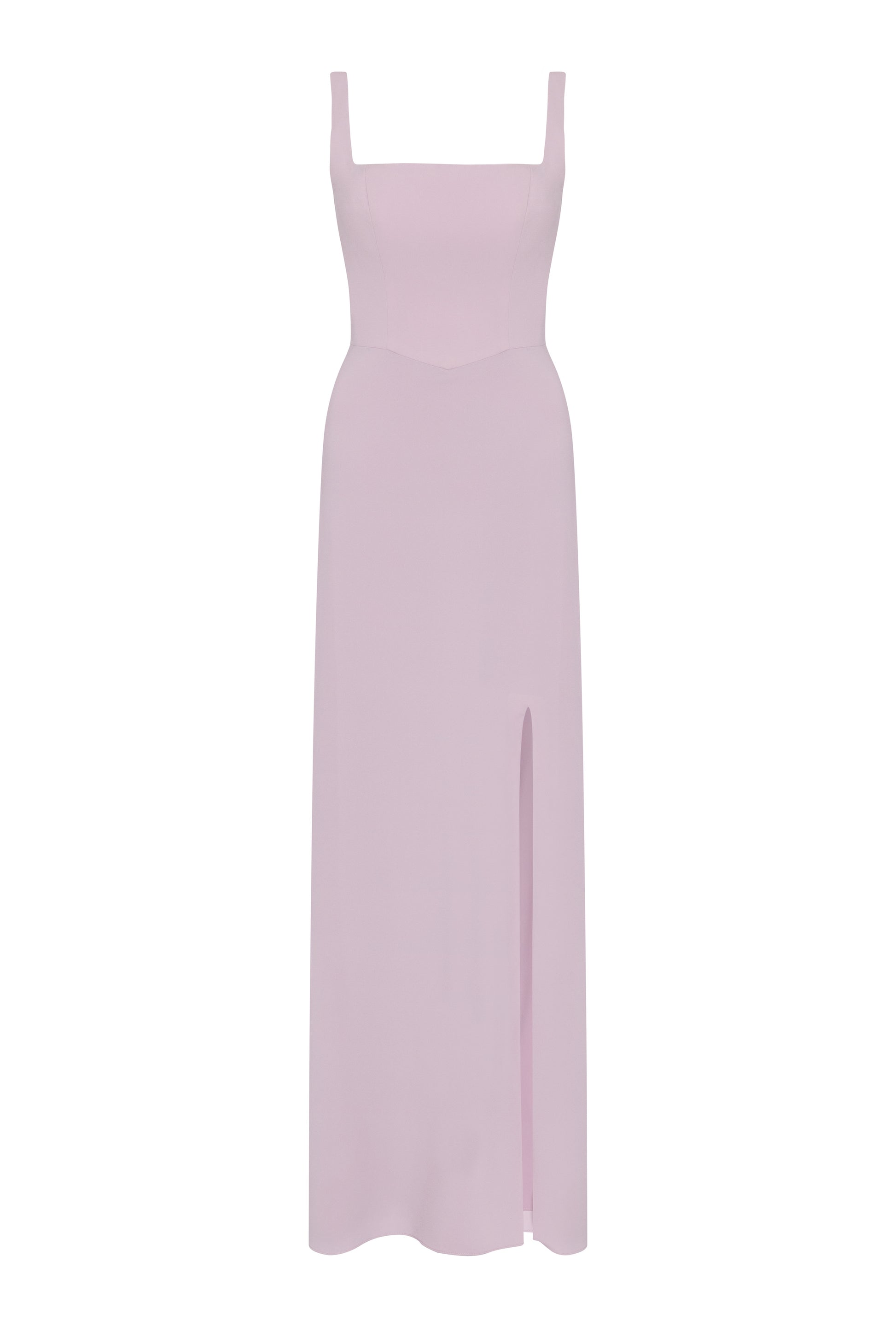 Helena is a modern moss crepe bridesmaid dress, designed for contemporary bridal parties. Elegant, structured, and size-inclusive, this fitted gown features a sleek square neckline and clean, timeless lines, perfect for bridesmaids seeking understated sophistication with a modern edge.