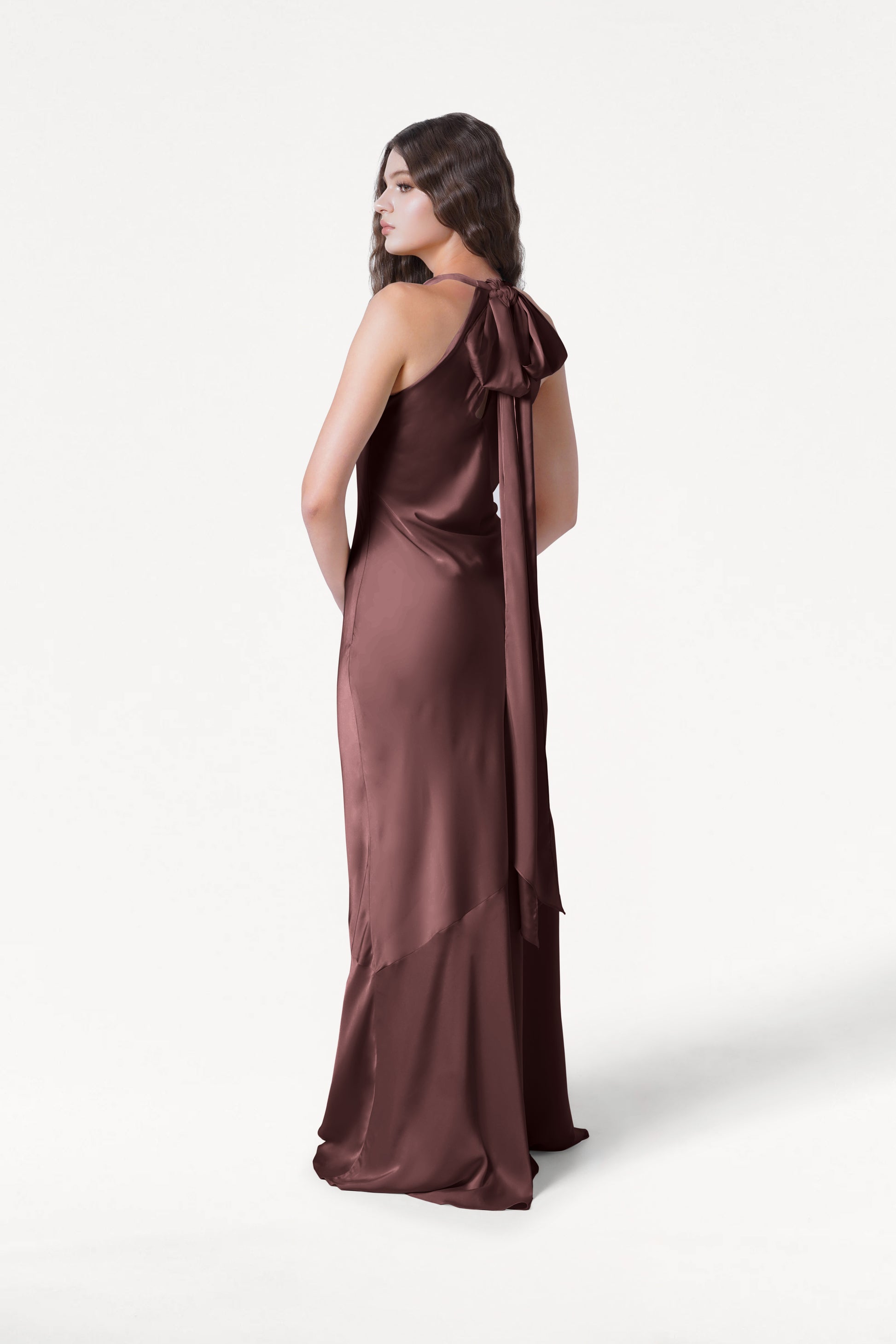 Mira Bridesmaid Dress in Chocolate Brown Satin