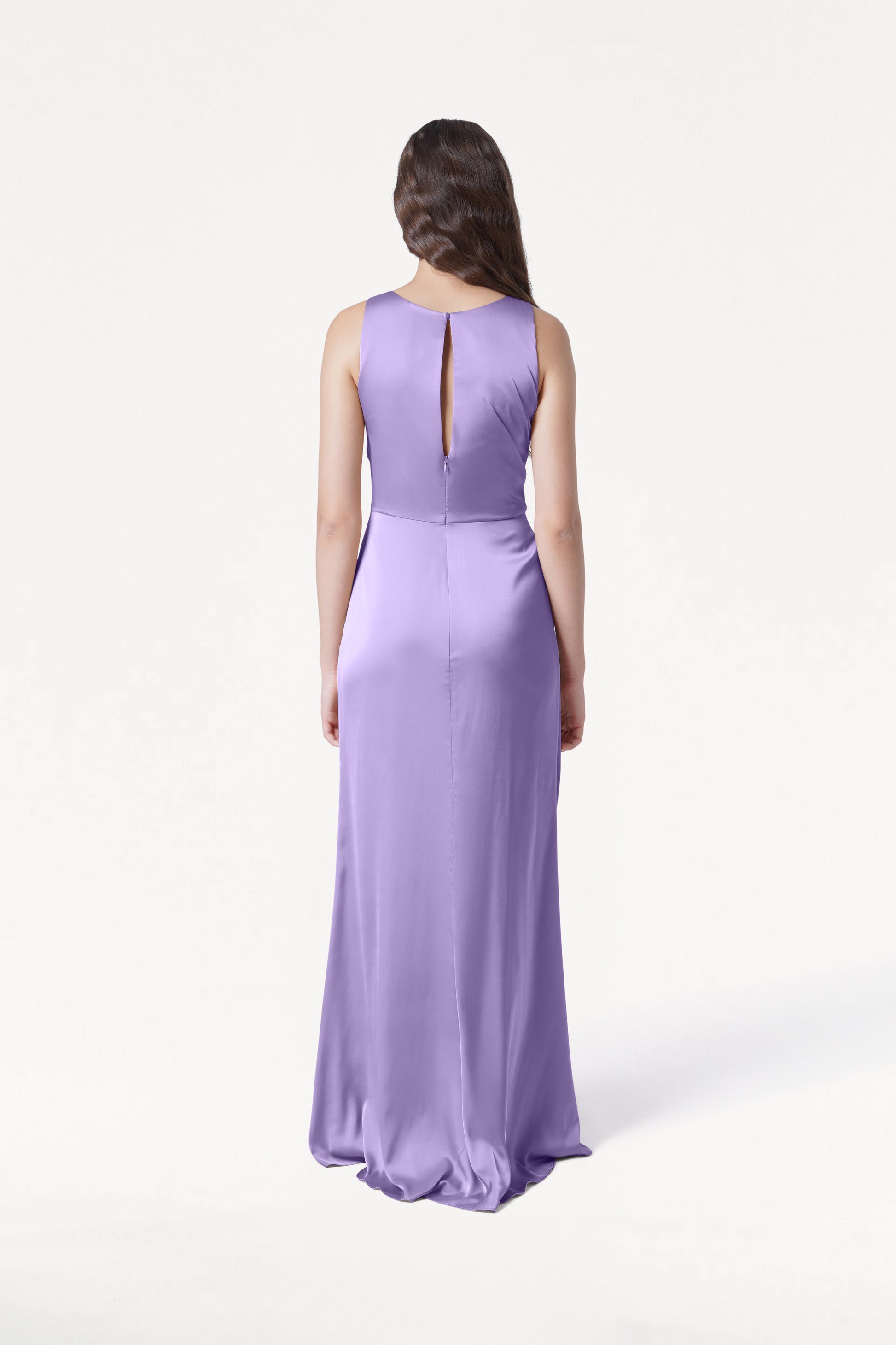 The Nala Dress is a romantic satin bridesmaid dress designed for modern bridal parties who love effortless elegance with a refined edge. Crafted from lustrous satin that glides over the body, this beautifully draped silhouette features a graceful boat neckline and soft Grecian-inspired pleating that gently sculpts and flatters every shape. Feminine yet understated, Nala brings a sense of quiet luxury to contemporary weddings.