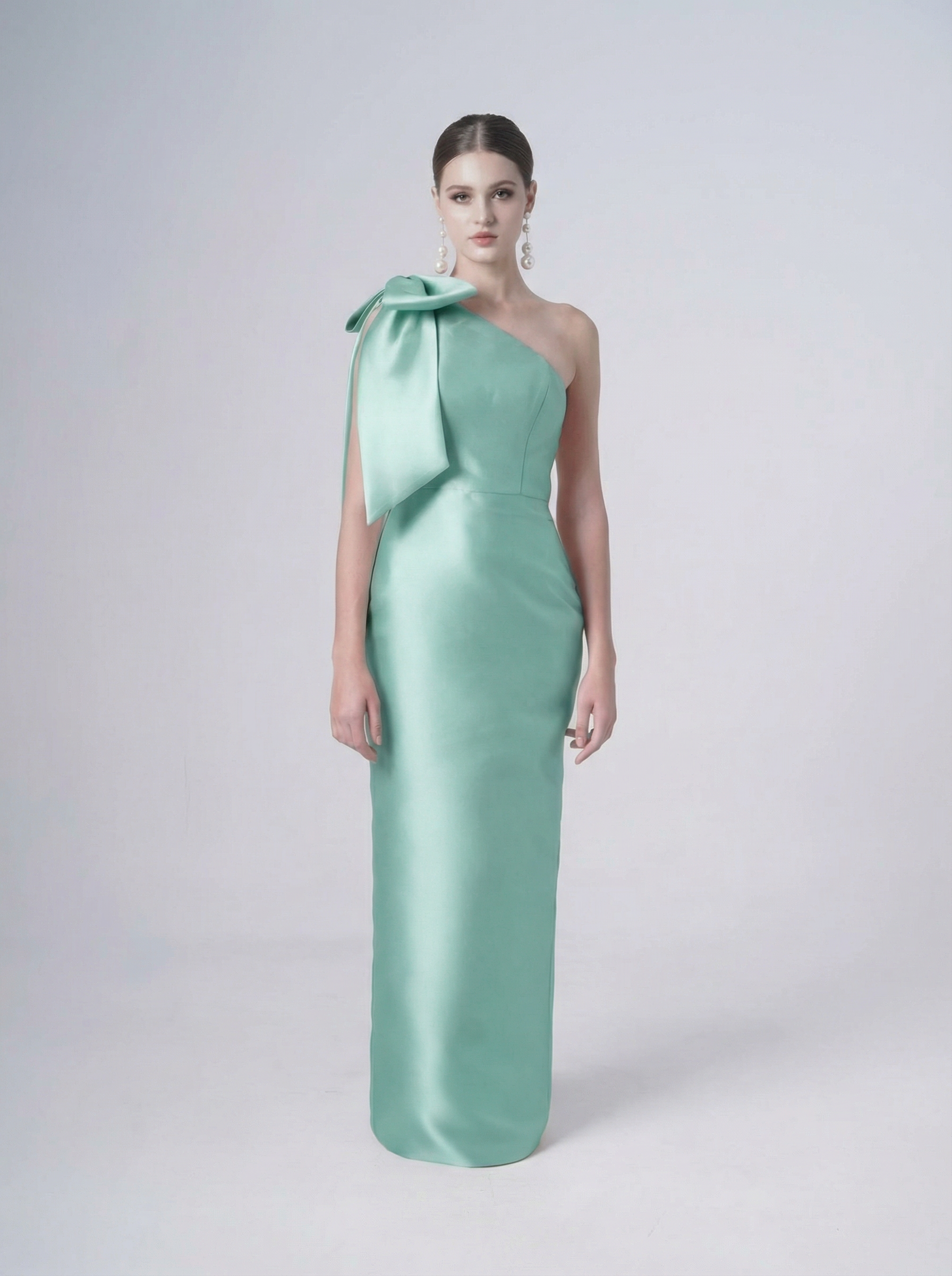 Ritz is an elegant, sculptural satin twill bridesmaid dress, designed for modern bridal parties seeking a statement style, especially for formal and black-tie weddings. Sophisticated, size-inclusive, and fashion-forward, this one-shoulder gown features an oversized bow with long flowing tails, creating drama and movement for ceremony and evening celebrations.