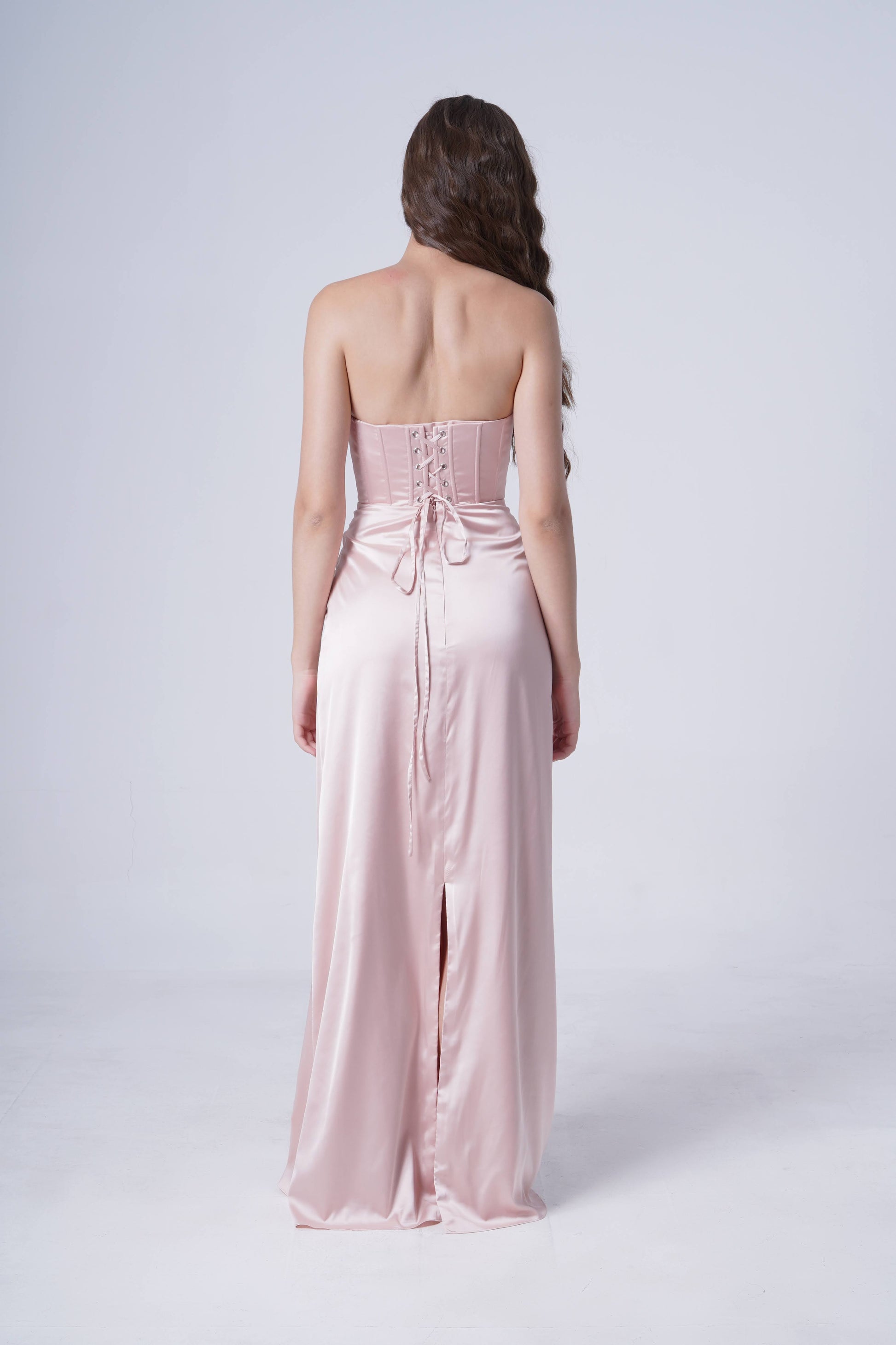 Elegant, sculptural, and thoughtfully designed, Selina is a satin bridesmaid dress that flatters a wide range of body shapes. Its supportive corset construction, draped detailing, and luxurious satin fabric make it a standout choice for bridesmaids seeking confidence, comfort, and style.